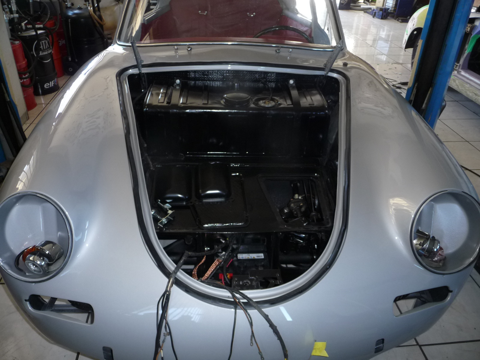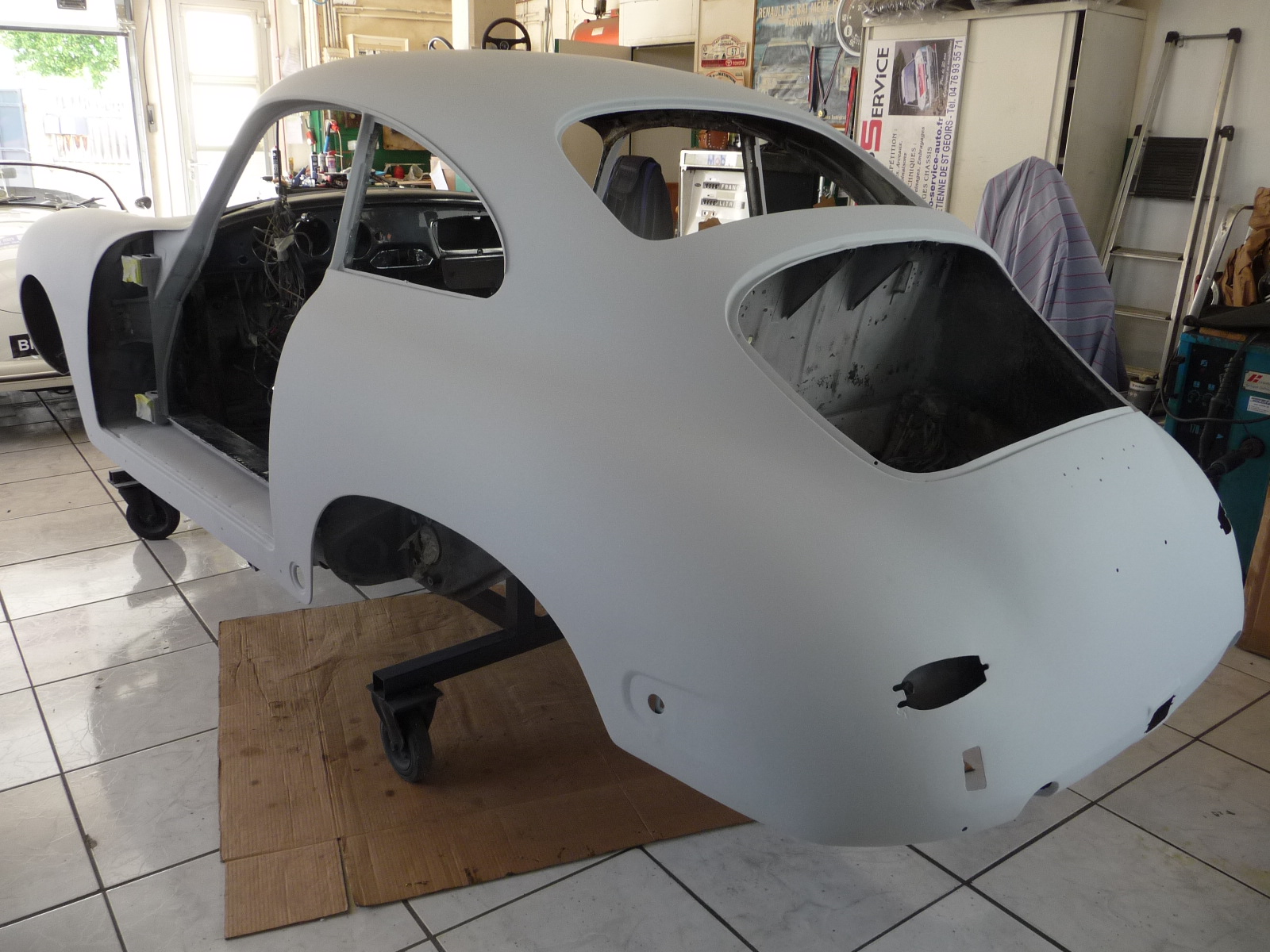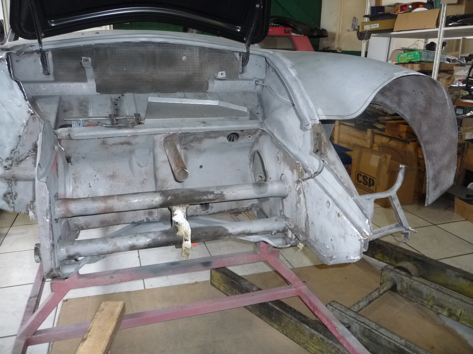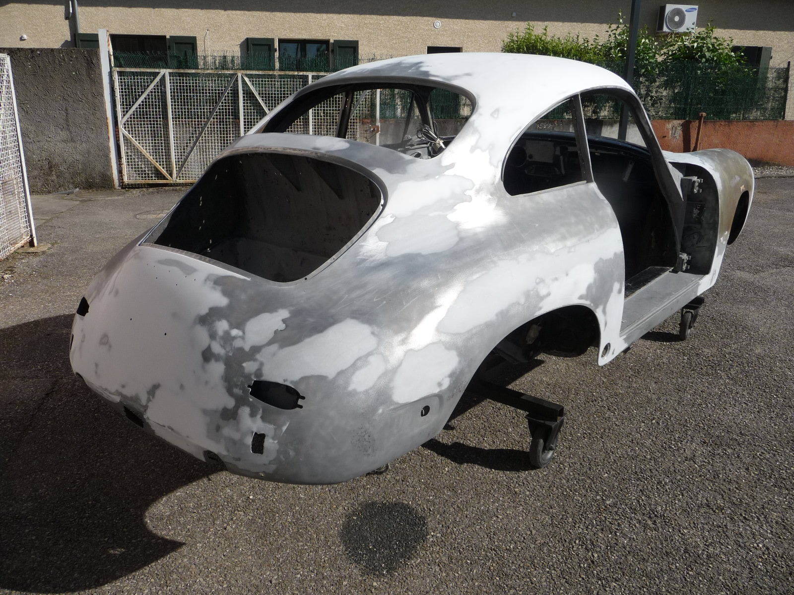 Recontruction complète de cette Porsche 356 de 1960 modèle BT5 passage au marbre de controle chassis remplacement des elements de tolerie av reconstruction de tolerie divers